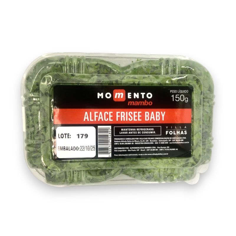 A Alface Frisee Verde Baby Momento Mambo possui folhas crespas e textura levemente crocante, trazendo um toque sofisticado e sabor levemente amargo às saladas. Ideal para composições mais elaboradas, harmoniza bem com molhos cítricos e queijos suaves. Fresca e pronta para o consumo, é cultivada com cuidado para garantir qualidade, sabor e aparência impecáveis.