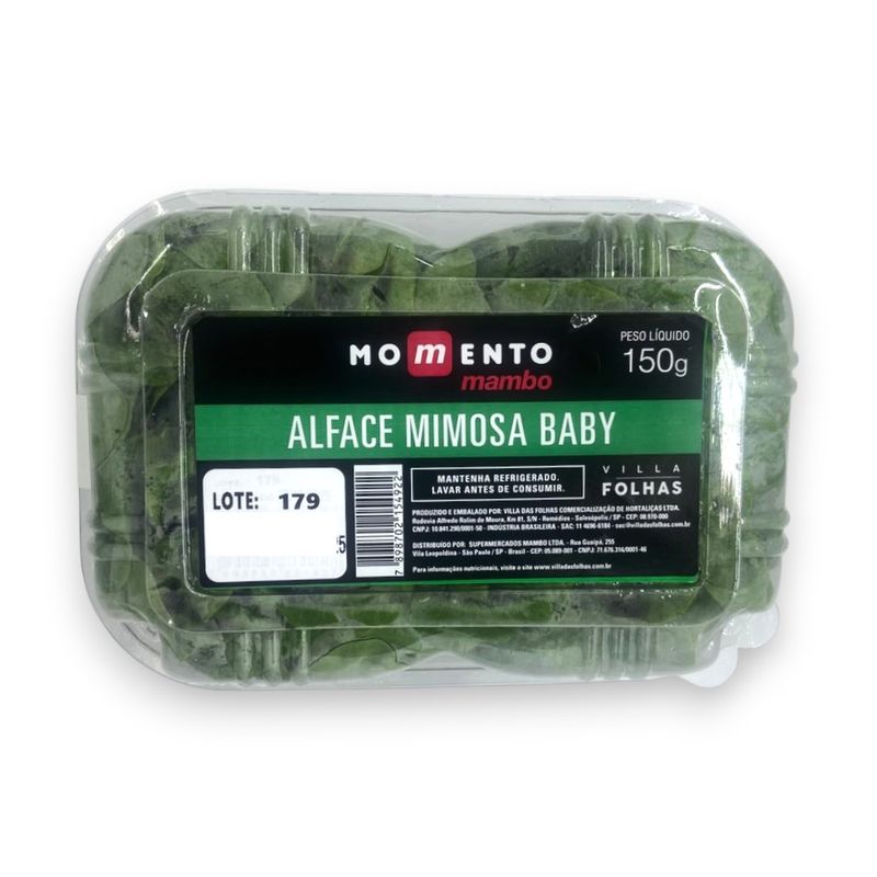 A Alface Mimosa Baby Momento Mambo apresenta folhas macias, de formato delicado e sabor suave, ideal para saladas elegantes e leves. Cultivada e selecionada com rigor, chega fresca e pronta para consumo. Sua textura diferenciada e aparência vibrante trazem charme e qualidade à mesa, sendo uma excelente opção para refeições equilibradas.