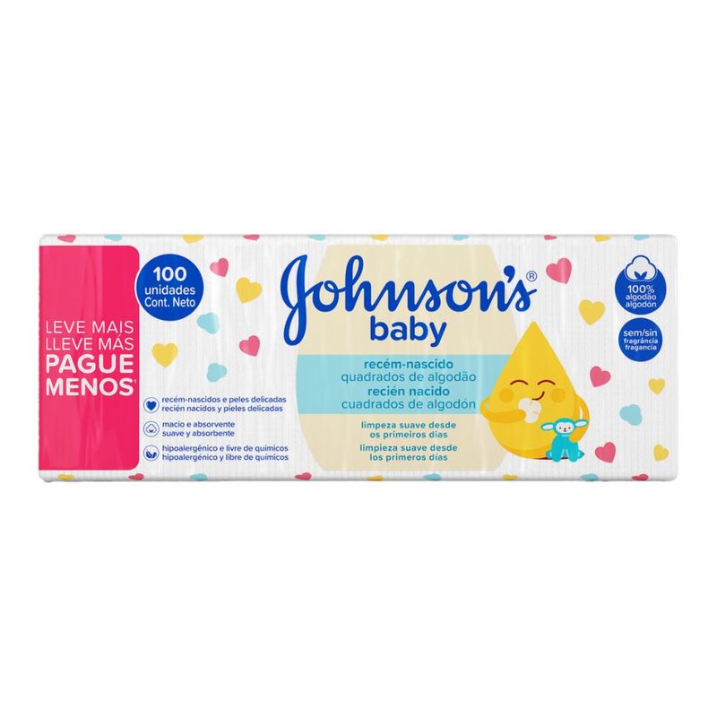Algodão Quadrado Johnson’s Baby com 100 Unidades