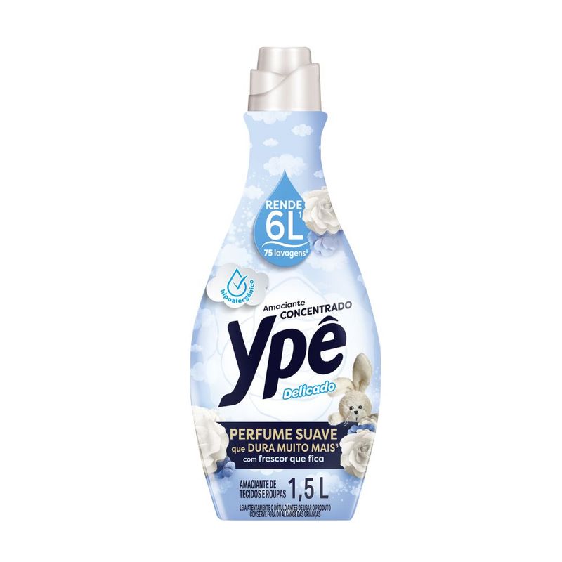 O Amaciante Concentrado Delicado Ypê 1,5L é sinônimo de cuidado, suavidade e perfume elegante. Especialmente formulado para roupas finas e tecidos sensíveis, como roupas de bebê e peças íntimas, o produto oferece toque aveludado e sensação de conforto incomparável. Sua tecnologia de fragrância prolongada mantém as roupas perfumadas por muito mais tempo, liberando notas suaves e aconchegantes que remetem à limpeza e bem-estar. A fórmula concentrada garante alto rendimento, com poucas tampas sendo suficientes para cuidar de uma grande quantidade de roupas. Dermatologicamente testado, não agride as fibras e ajuda a conservar as cores e a durabilidade dos tecidos. Além disso, contribui para facilitar o processo de passar, evitando o acúmulo de eletricidade estática. Ideal para quem valoriza qualidade, perfume e economia em cada lavagem, o amaciante Delicado Ypê é a escolha perfeita para um cuidado diário com suavidade e eficiência.
