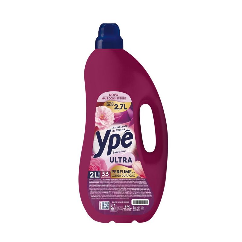 O Amaciante de Roupas Primavera Ultra Ypê proporciona maciez, perfume e cuidado de longa duração para suas roupas. Sua fórmula concentrada rende muito mais, deixando os tecidos agradavelmente perfumados e com toque suave. A fragrância Primavera combina notas florais delicadas que garantem sensação de frescor e conforto por mais tempo. Além de facilitar o passar e reduzir o amassado, o produto protege as fibras dos tecidos, mantendo as roupas com aparência de novas por mais tempo. A embalagem de 2 litros oferece excelente rendimento e economia, sendo ideal para o uso doméstico diário.