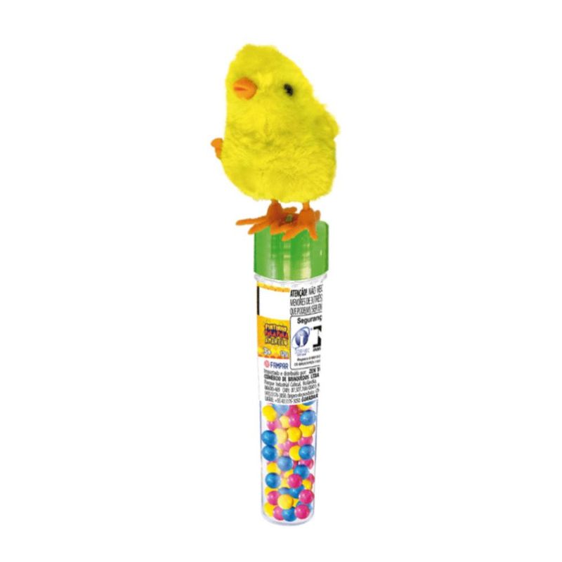 A Bala Confeito Pintinho Pula Pula Fampar 12g é pura diversão! Acompanha um brinquedo no formato de pintinho que pula, encantando as crianças enquanto saboreiam os confeitos açucarados. É uma opção divertida e colorida para lembrancinhas e momentos de brincadeira.