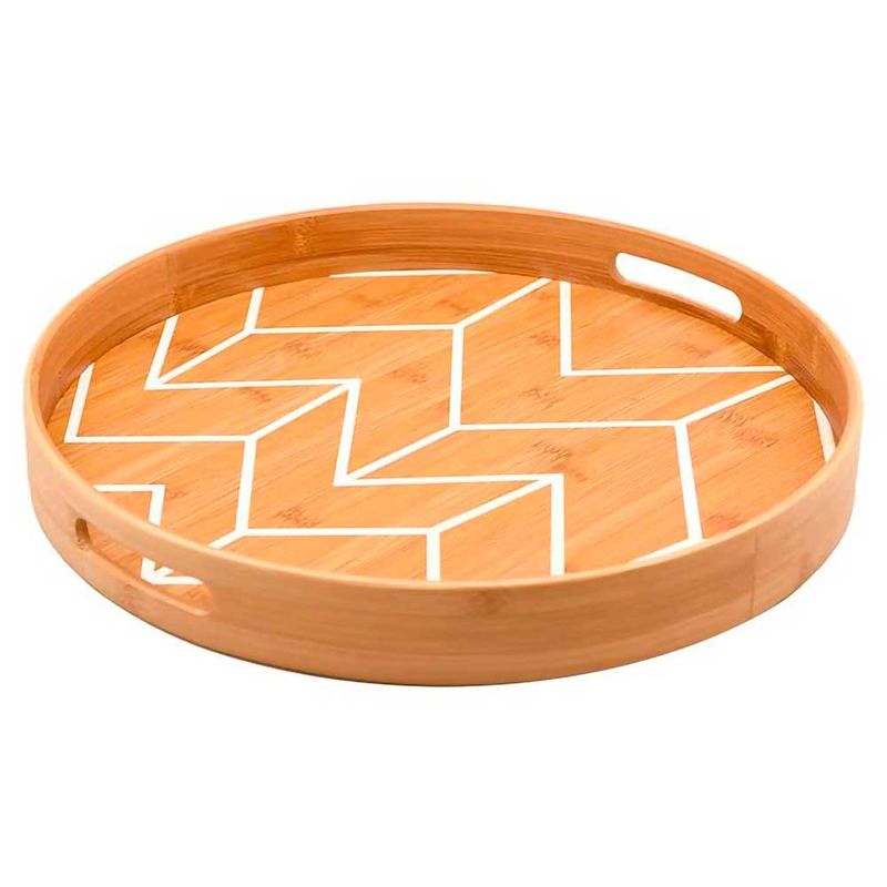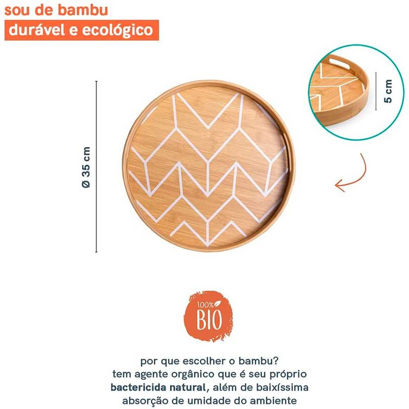 Essa Bandeja de Bambu Redonda Setas é ideal servir um café da manhã ou um lanche, além de ser perfeita para compor a decoração, podendo organizar copos, taças, latas, xicaras, porta condimentos ou mantimentos. O bambu trás à decor um estilo rústico, qual acrescenta elegância e charme à decoração da cozinha, cantinhos de chá e café, etc. Um produto clássico, que agrega muito á Décor!