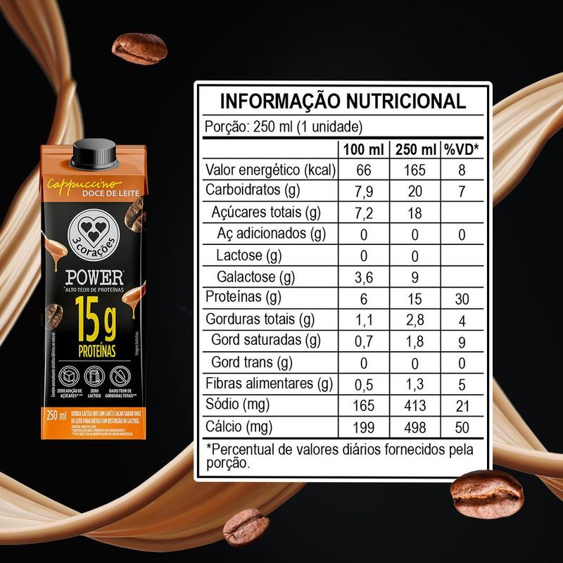 Bebida Láctea Cappuccino Power Whey 15g Doce de Leite 3 Corações 250ml