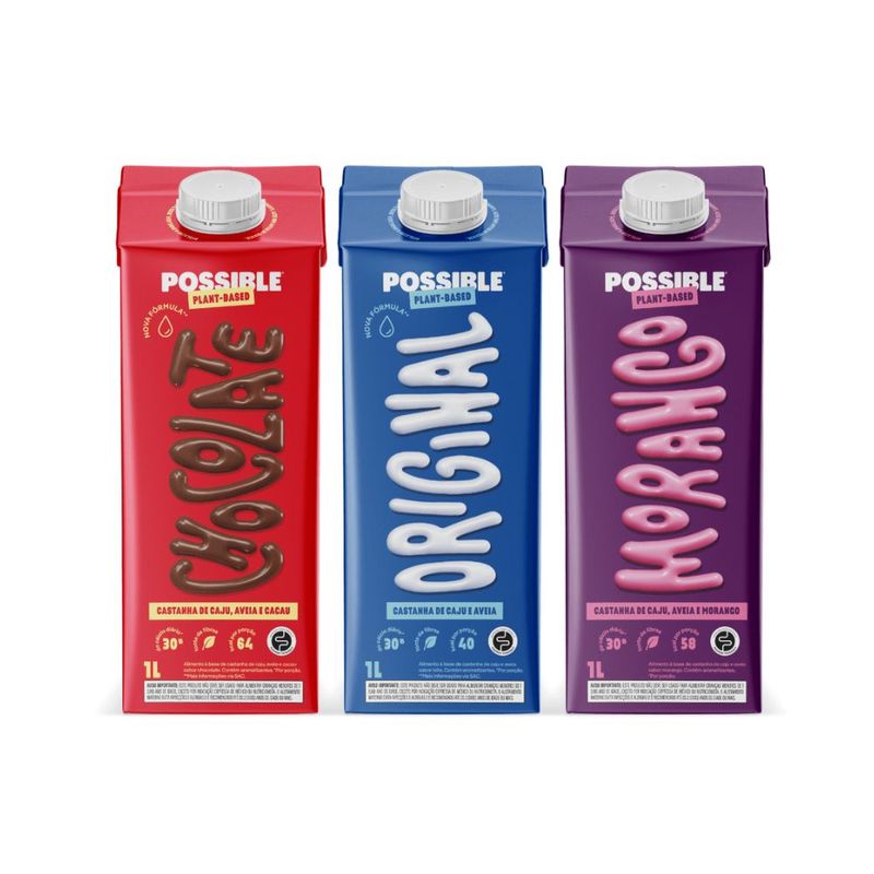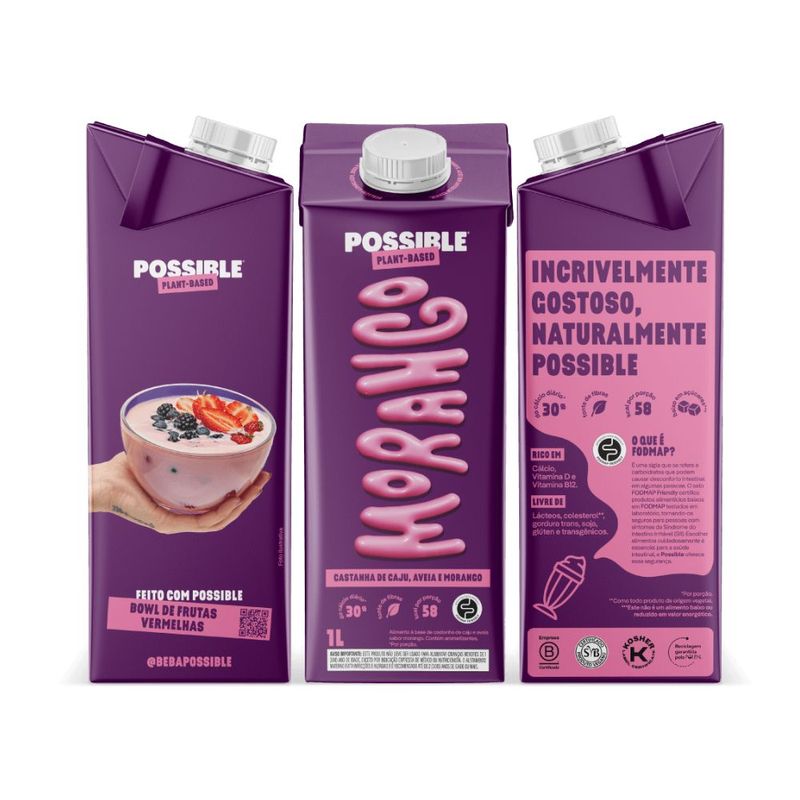 Bebida Vegetal Castanha-de-Caju, Aveia e Morango Possible 1L