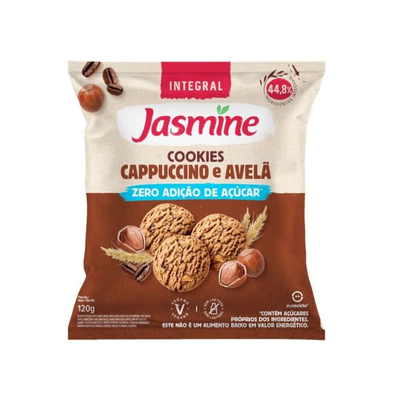 Biscoito Cookie Vegano Integral Cappuccino e Avelã Zero Açúcar Jasmine 120g