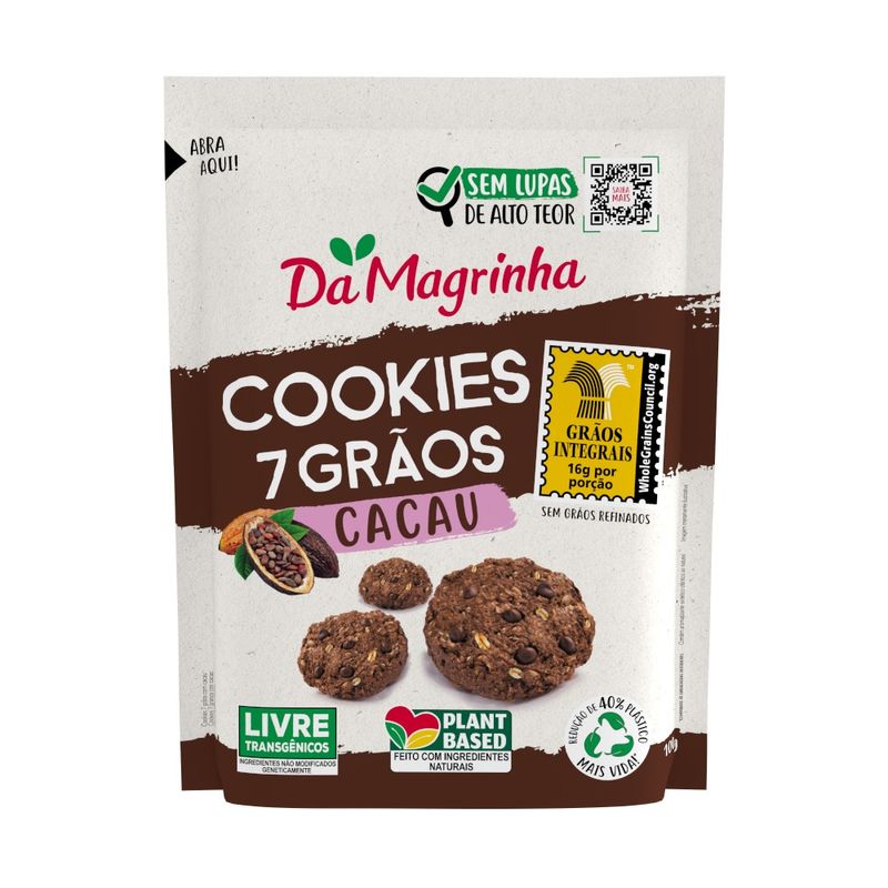 O Biscoito Cookies 7 Grãos Cacau Da Magrinha 100g combina a nutrição dos 7 grãos integrais com o sabor intenso do cacau, criando um lanche saudável e delicioso. Esses cookies são ricos em fibras, o que auxilia na digestão e proporciona mais saciedade ao longo do dia. Feitos sem adição de conservantes artificiais, eles oferecem uma alternativa mais natural e nutritiva para quem busca equilíbrio na alimentação. O sabor marcante do cacau traz uma experiência de sabor única e sofisticada, enquanto a crocância dos grãos integrais garante prazer em cada mordida. Práticos e saborosos, esses biscoitos são ideais para acompanhar cafés, chás ou como um snack rápido e funcional.