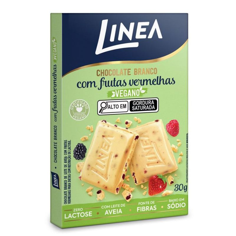 Linea Chocolate Branco com Frutas Vermelhas é um chocolate vegano, feito com leite de aveia e sem adição de açúcares sendo assim ideal para atender pessoas em dieta que estão procurando emagrecer, diabéticos, pessoas que buscam um doce mais saudável e para veganos ou pessoas que evitam o consumo de ingredientes de origem animal, sua fórmula é vegana, sem adição de sódio e açúcares, zero lactose, fonte de fibras, feita com leite de aveia e manteiga de cacau, e, ainda, possui selo ANAD, selo da Associação Brasileira de Veganismo...