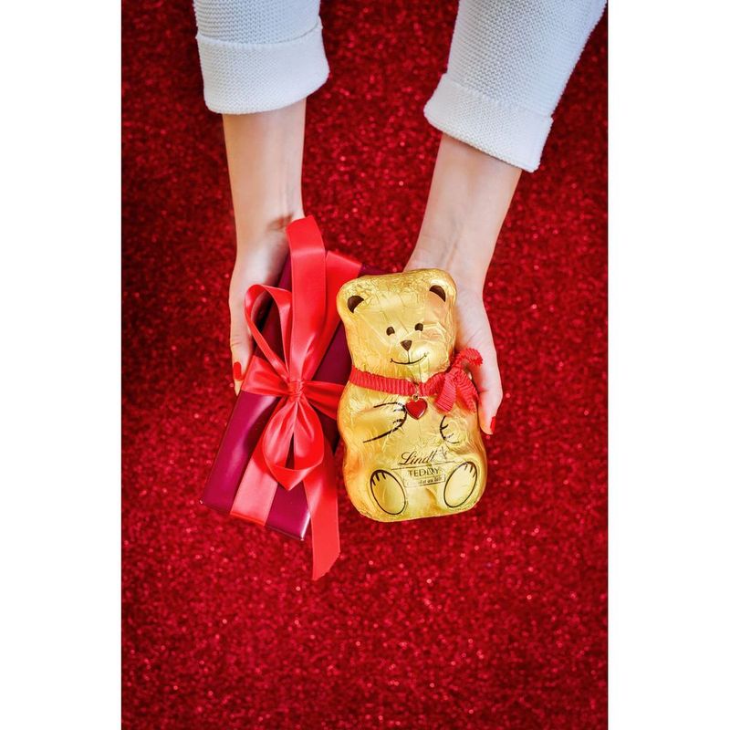 Perfeito para dar de presente ou para celebrar o Natal com amigos e familiares, o Lindt Teddy Bear vem em uma elegante embalagem dourada que harmoniza com as decorações natalinas. Além disso, o ursinho traz um charmoso colar vermelho com um pingente de coração, tornando-se também uma lembrança especial.