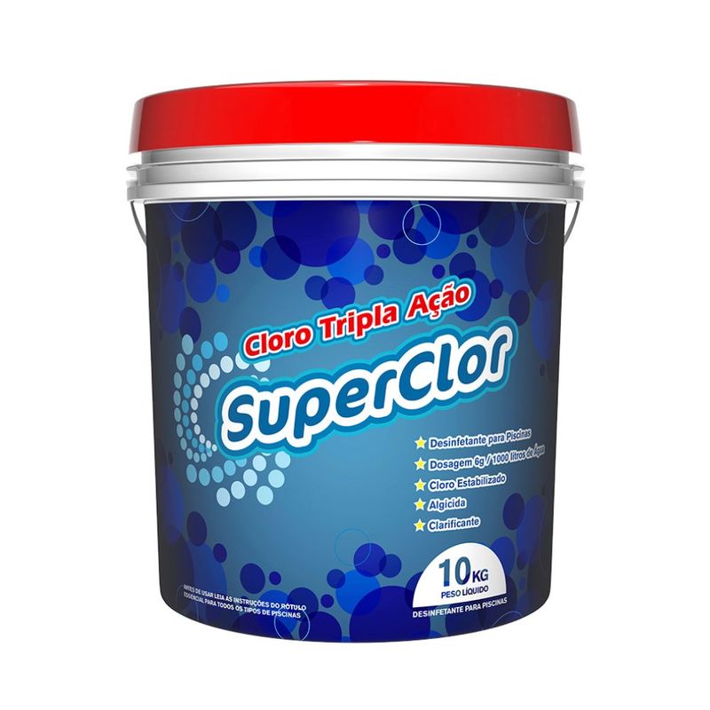 O Cloro para Piscina Tripla Ação Superclor 10kg é formulado para limpeza, desinfecção e manutenção da água, garantindo piscina cristalina e segura. Combina eficácia contra bactérias, algas e impurezas com liberação prolongada de cloro, proporcionando manutenção prática e eficiente. Produto em embalagem de 10kg ideal para residências, clubes e espaços de lazer, garantindo rendimento superior e economia. Fácil de usar, dissolve rapidamente na água, mantendo níveis ideais de desinfecção. Produto confiável, seguro e de alta performance, garantindo qualidade e proteção para toda a família.