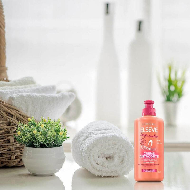 Creme para Pentear Elseve Longo dos Sonhos cuida do comprimento danificado e sela as pontas para salvar os últimos 3 centímetros dos fios e para evitar o corte. Com um coquetel de queratina vegetal, vitaminas e óleo de rícino, ele preenche e recupera as áreas fragilizadas por toda a extensão do cabelo, da raíz até as pontas. Elseve Longo dos Sonhos é um creme para pentear sem enxágue que age cuida do comprimento dos cabelos, lacrando as pontas e salvando os últimos 3 centímetros. com textura cremosa.