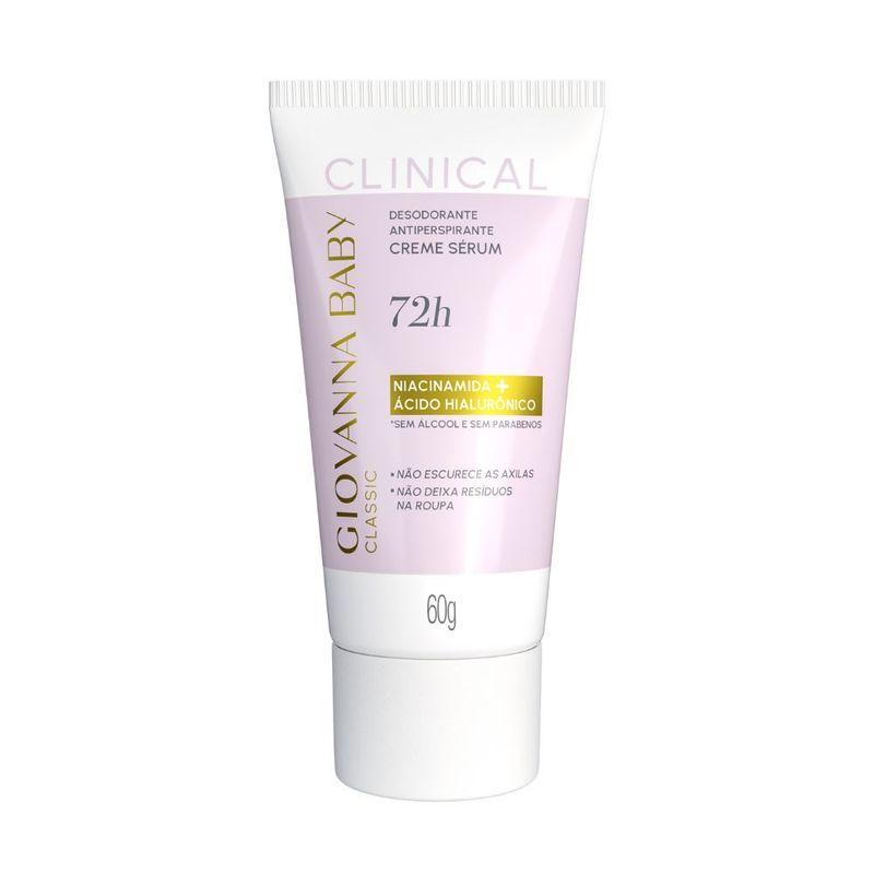 Experimente a máxima proteção contra o mau odor e a umidade com o Desodorante Creme Sérum Classic Clinical da Giovanna Baby. Sua fórmula avançada em creme-sérum oferece 48 horas de cuidado intenso sem agredir a pele, enquanto a fragrância clássica e inconfundível Giovanna Baby proporciona uma sensação de frescor e bem-estar o dia todo. Textura suave, rápida absorção e eficácia comprovada para a sua rotina!
