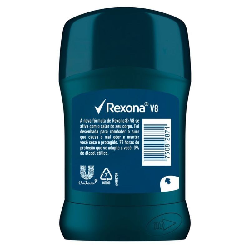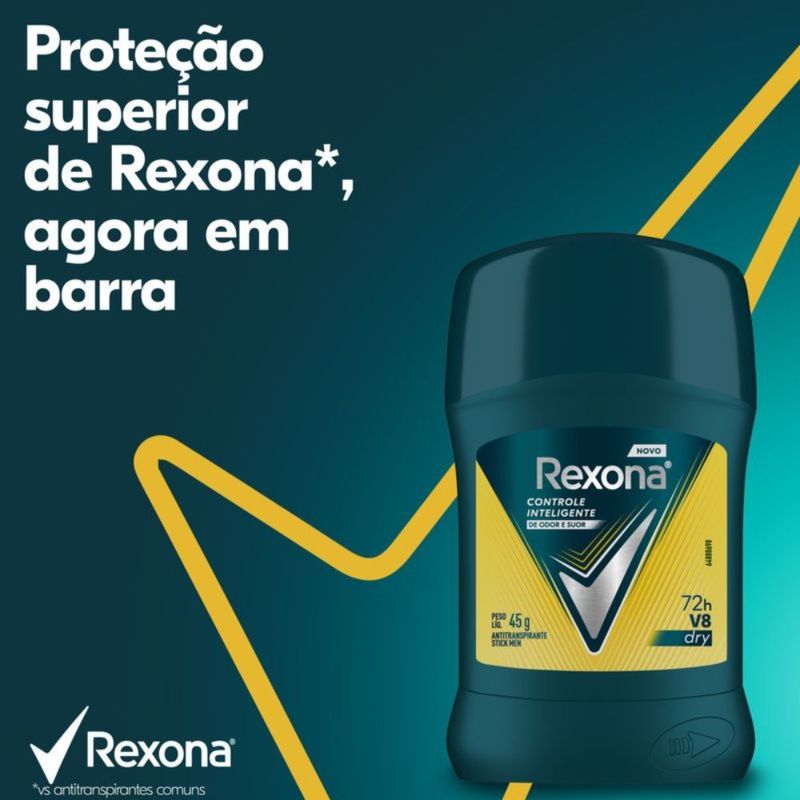 Com proteção antitranspirante intensa, o Desodorante V8 Dry Stick Rexona é ideal para homens que enfrentam rotinas agitadas. Fragrância marcante e tecnologia que se adapta ao movimento, oferecendo proteção de até 48 horas. Formato stick de 45g, prático e de fácil aplicação. Garante sensação de frescor e confiança o dia inteiro. Uma proteção poderosa para quem vive acelerado!