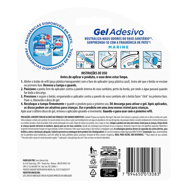 Desodorizador Sanitário Gel Adesivo com Aplicador Marine Refil Pato 38g
