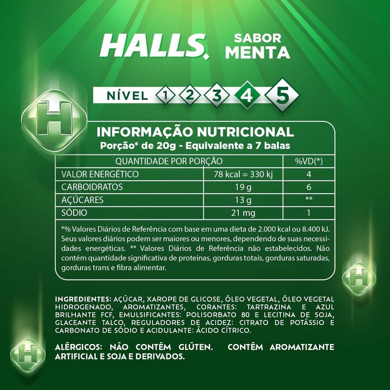 Halls é bala mais consumida do Brasil! Sua formulação possui mentol, que garante uma poderosa sensação de refrescância e respiração profunda, para você se sentir pronto para encarar qualquer desafio. Disponível em deliciosos sabores, Halls é a bala perfeita para o dia-a-dia e também para momentos de curtição com a galera. Sua embalagem bag, é perfeita para sempre ter mais de um Halls com você e compartilhar com os amigos.