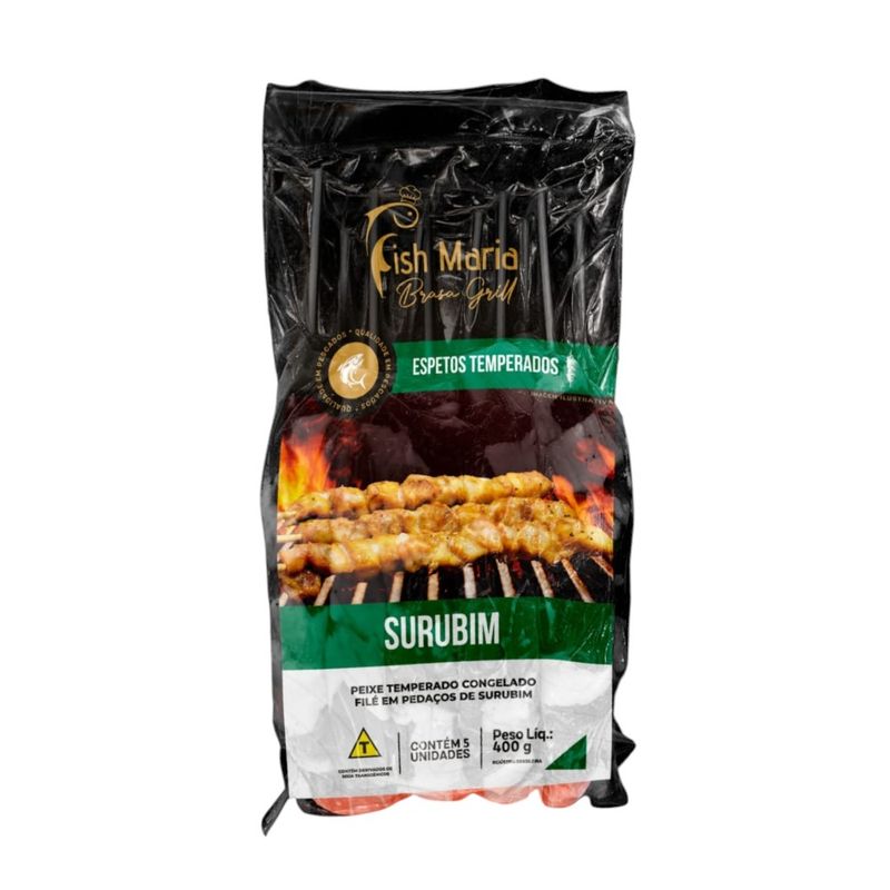 Espeto Temperado Filé Peixe Surubim Congelado Fish Maria 400g com 5 Unidades