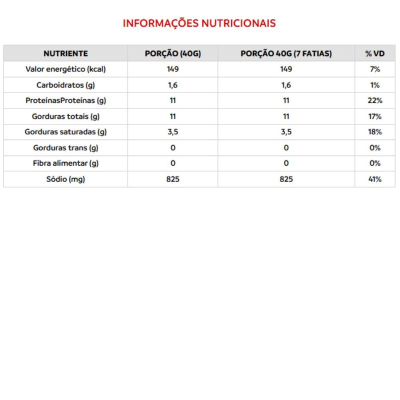 Carne suína, toucinho suíno, sal, leite em pó desnatado, dextrose**, vinho branco, pimenta-branca, cultura starter, extrato de alecrim, páprica, aromatizantes: aromas naturais de páprica, fumaça e alho, antioxidantes: ácido ascórbico e isoascorbato de sódio, estabilizantes: tripolifosfato de sódio, pirofosfato ácido sódio e polifosfato de sódio, conservador: nitrito de sódio.