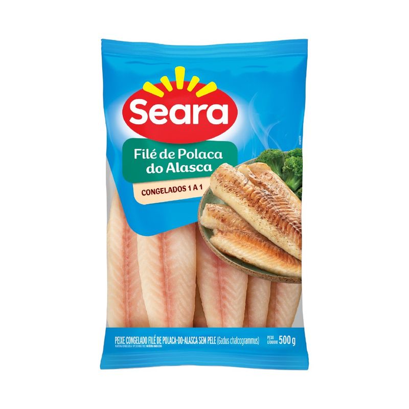 Tenha praticidade e qualidade com o Filé de Polaca do Alasca Congelado Seara 500g. A polaca é um peixe de água fria, de carne branca, firme, sabor suave e baixo teor de gordura. Os filés são limpos, sem pele e sem espinhas, congelados individualmente para maior comodidade, permitindo usar apenas a quantidade necessária. Versátil, pode ser grelhado, assado, cozido ou empanado, sendo uma opção saudável e rápida para o jantar. Embalagem de 500g.