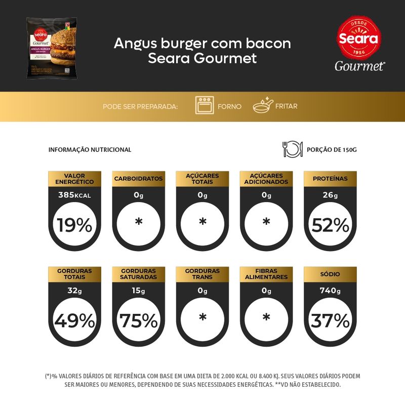 Hambúrguer Angus com Bacon Congelado Seara Gourmet 150g