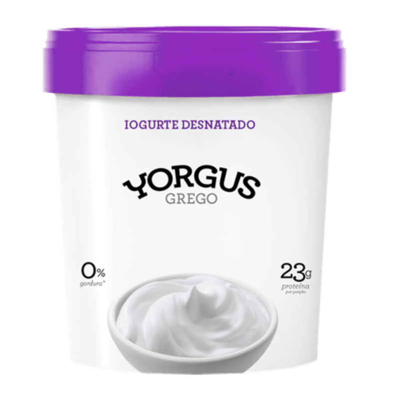 Iogurte grego desnatado Yorgus, elaborado com 100% leite fresco, receita original grega, sem adição de açúcares ou conservantes. Somente ingredientes naturais, é 0% gordura e 3x mais proteínas que o iogurte tradicional. Ideal no café da manhã ou no lanche da tarde com frutas ou cereais.