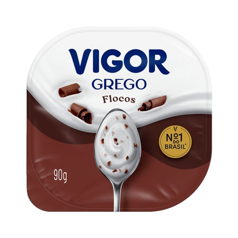 O tradicional Vigor Grego com deliciosos flocos de chocolate. Ultragostoso para qualquer momento do dia.