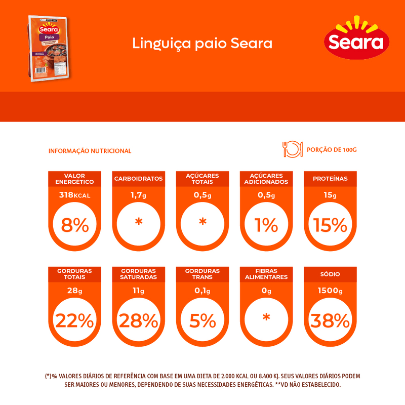 Paio Seara é feito com carnes selecionadas e é defumado naturalmente. Seu preparo é rápido e fácil. Ideal para feijoada, com feijão e caldos.