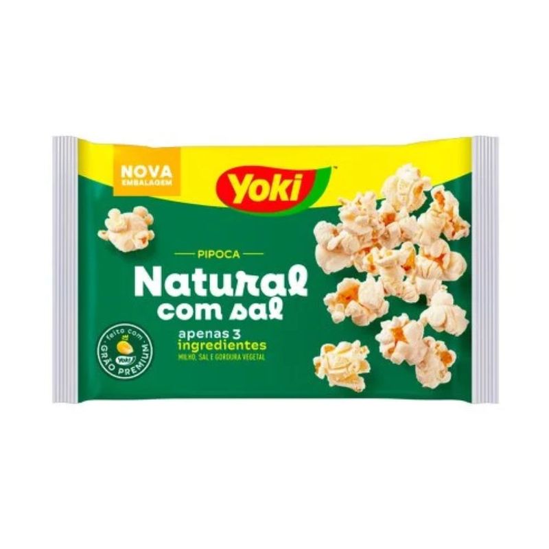 Com qualidade inigualável, a pipoca Yoki é irresistível para acompanhar o desenho favorito, a novela e o futebol. Seja em que momento for, com a pipoca Yoki, a alegria é garantida. Ingredientes: milho de pipoca, gordura vegetal e sal.