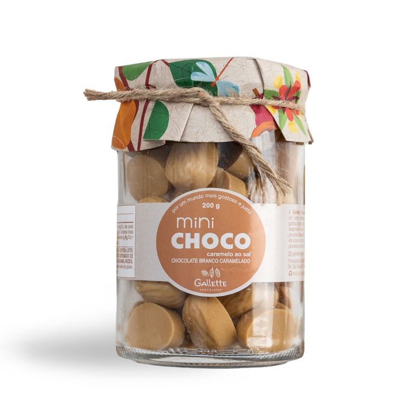Mini chocolates brancos com toque de caramelo, textura cremosa e sabor marcante.