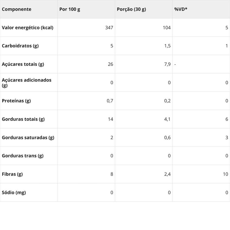 Ingredientes: Tâmara, damasco turco (damasco seco), ameixa, pistache, uva passa, figo turco, castanha do Pará e nozes. Alerta para Alérgicos: Pode conter amendoim, castanhas, pistaches, pecãs, macadâmias, castanhas de caju, nozes, avelãs, amêndoas, soja e glúten. Não contém lactose. Pode conter glúten.