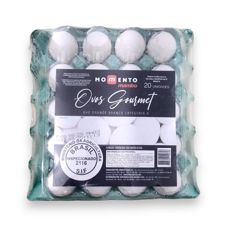 Ovos Brancos Gourmet Momento Mambo com 20 Unidades