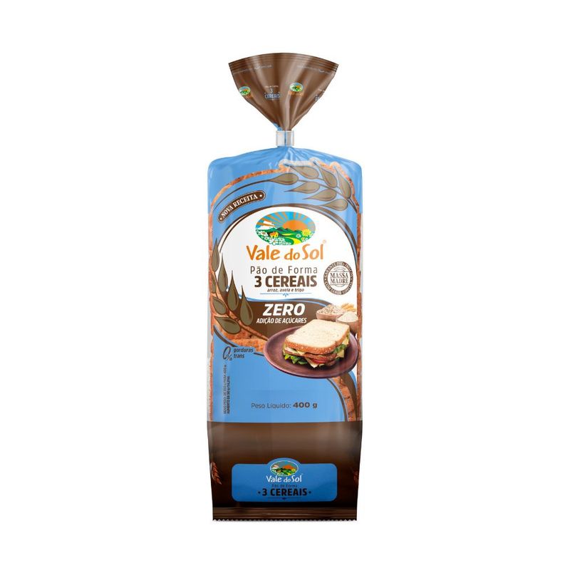 Pão de Forma 3 Cereais Sem Adição de Açúcar Vale do Sol 400g