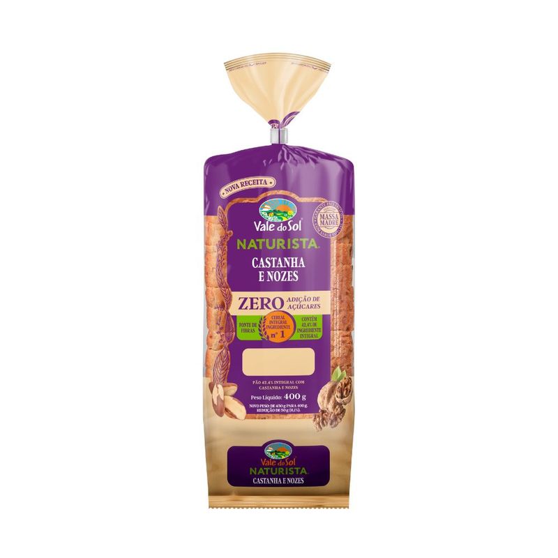 Pão de Forma Integral Castanha e Nozes Sem Adição de Açúcar Vale do Sol 400g