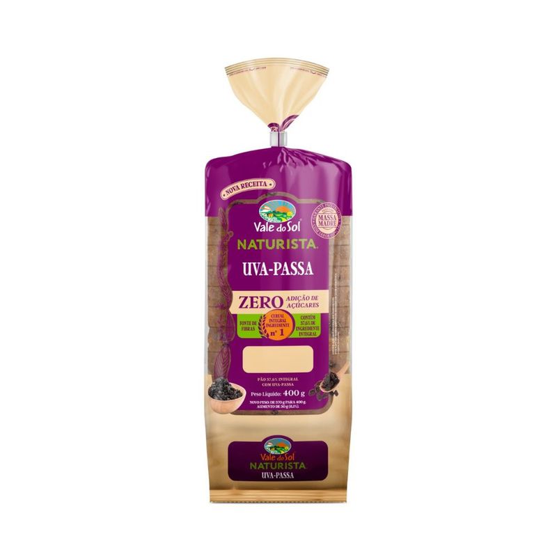 Pão de Forma Integral Uva Passa Sem Adição de Açúcar Vale do Sol 400g