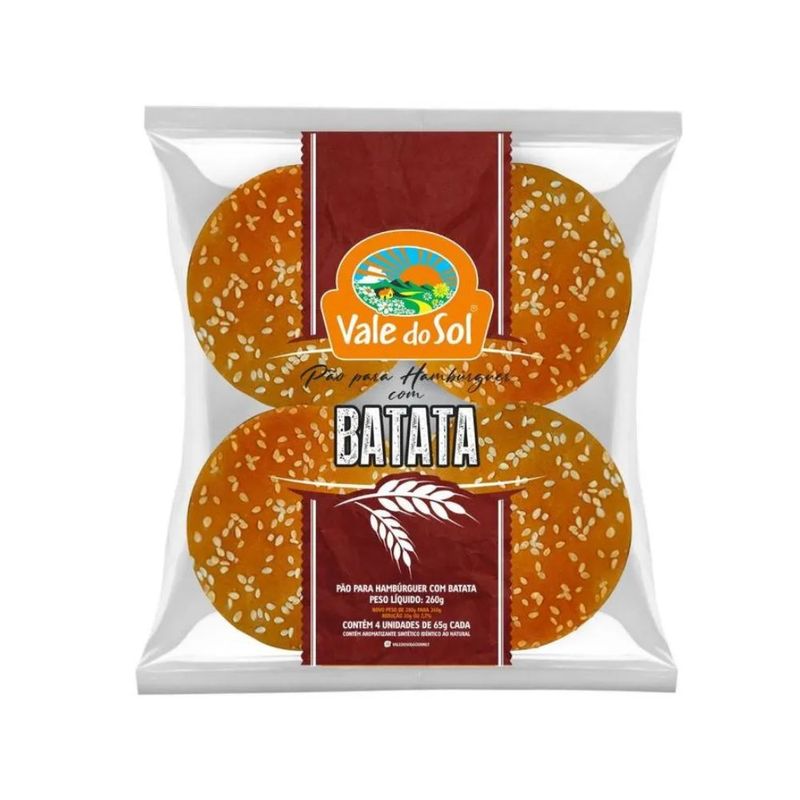 Pão para Hambúrguer com Batata Vale do Sol 260g com 4 Unidades