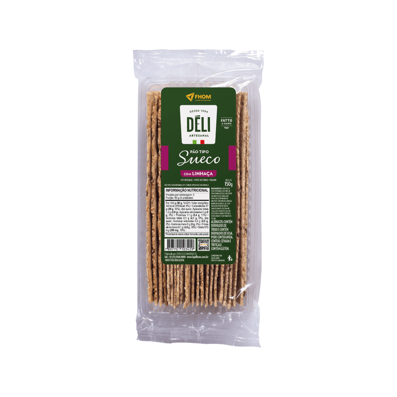 Pão sueco crocante, leve e integral, enriquecido com linhaça. Uma opção saudável para consumir com patês, queijos ou snacks do dia a dia.