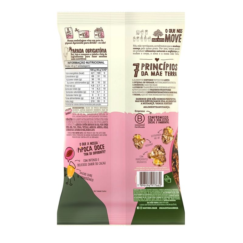 Pipoca Doce Pronta Orgânica Mãe Terra NuPoca Cacau 45g