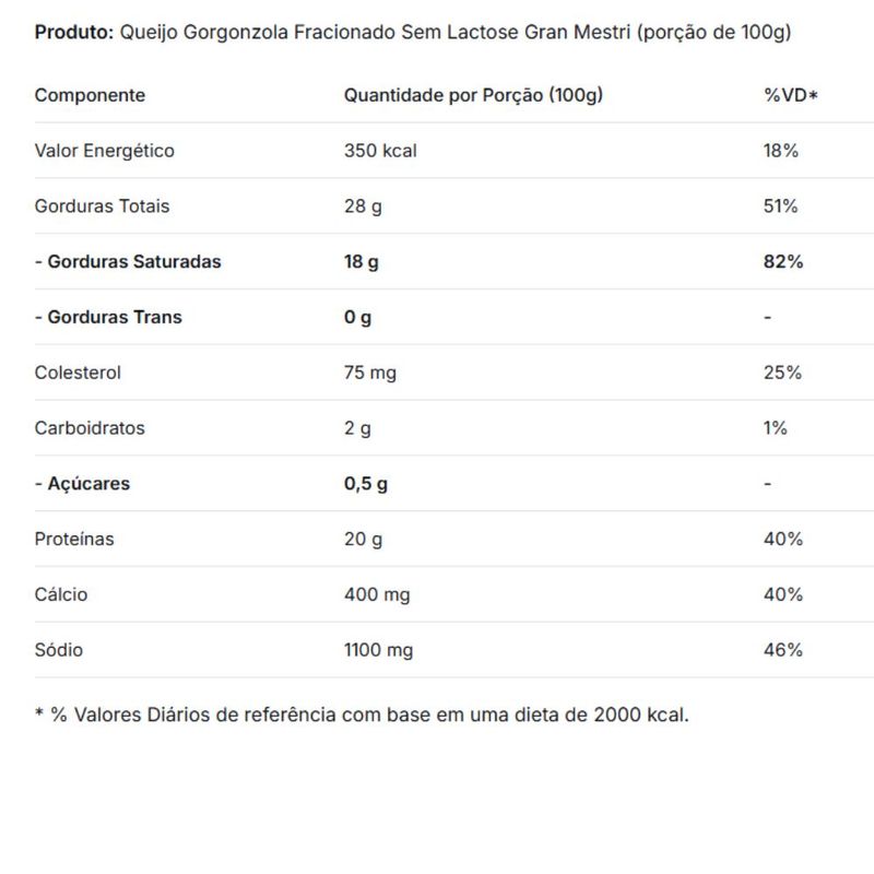 Queijo Gorgonzola Fracionado Sem Lactose Gran Mestri Kg