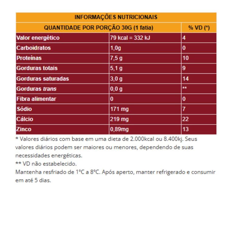 A Mussarela de Búfala é feita com a tradicional receita mineira, utilizando o exclusivo leite de búfala. O queijo de búfala apresenta valores nutritivos muito superiores: tem menor teor de colesterol, é mais rico em cálcio, proteína, vitaminas, ferro, magnésio, fósforo e potássio. Aproximadamente 500g.