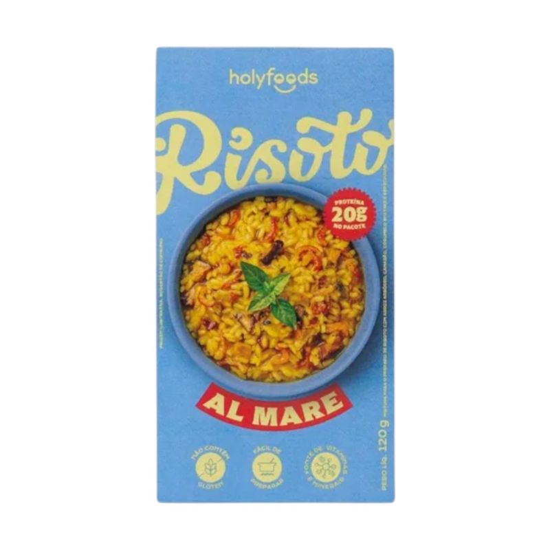 O Risoto Al Mare Holyfoods é uma refeição prática e sofisticada que combina o sabor marcante dos frutos do mar com a cremosidade tradicional do risoto italiano. Livre de glúten e feito com ingredientes naturais, é rico em proteínas e sabor. Sua formulação equilibrada traz arroz selecionado e temperos aromáticos que garantem um prato autêntico e reconfortante em poucos minutos. Ideal para quem busca praticidade sem abrir mão de qualidade e sabor. Uma refeição leve, nutritiva e gourmet, pronta para surpreender no almoço ou jantar.