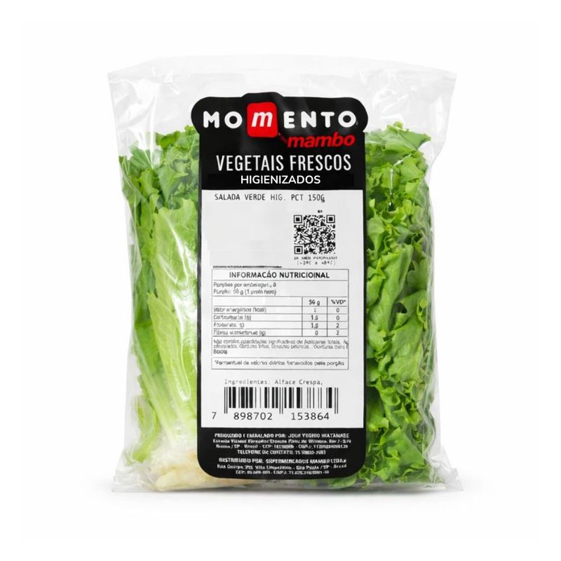 A Salada Verde Higienizada Momento Mambo 150g é uma mistura de folhas selecionadas preparada especialmente para oferecer praticidade, frescor e qualidade na sua rotina. Cada porção passa por um processo de higienização criterioso antes de ser embalada, garantindo segurança alimentar, sabor natural e textura crocante desde a primeira garfada. Ideal para quem busca uma opção rápida e saudável, essa salada pode ser consumida diretamente ou servida como base para refeições mais completas — perfeita para acompanhar proteínas grelhadas, sanduíches, wraps, bowls ou pratos leves no dia a dia. Versátil e pronta para uso, é uma excelente maneira de incluir mais fibras, vitaminas e minerais na alimentação com conveniência, sem perder o frescor dos vegetais. Mantenha refrigerada e consuma até a data indicada na embalagem para garantir toda a qualidade e sabor. Ingredientes: Alface Crespa, Alface Americana e Agrião.