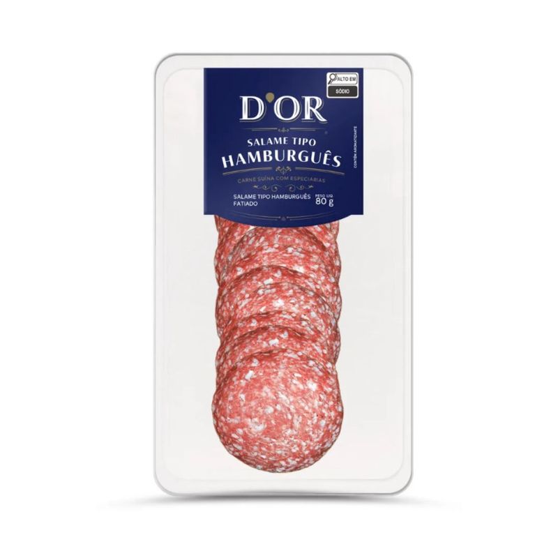 O Salame Tipo Hamburguês D'or é ideal para tábuas de frios, sanduíches e petiscos. Com sabor intenso, tempero equilibrado e textura macia, já vem fatiado em embalagem de 80g para garantir a máxima praticidade e frescor. Perfeito para acompanhar um bom vinho ou cerveja artesanal.