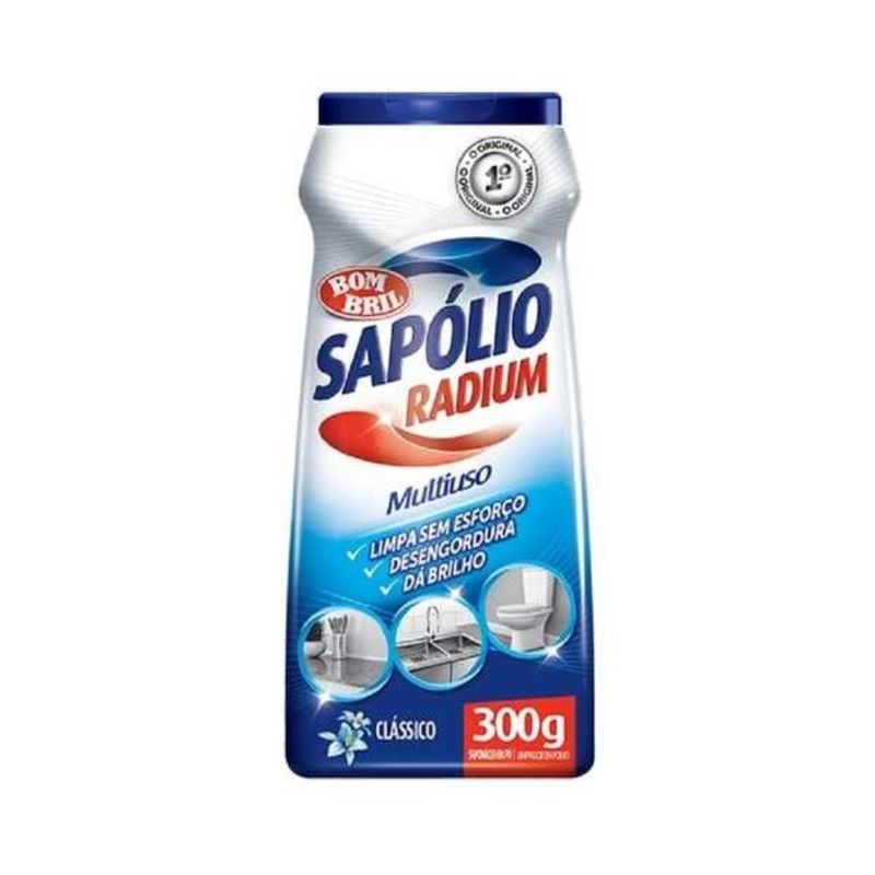 Conheça o poder clássico do Sapólio Radium Multiuso em Pó da Bom Bril, agora em embalagem de 300g para toda limpeza pesada da casa. Com fórmula eficiente e abrasiva suave, remove sujeiras difíceis, gordura incrustada e manchas persistentes de superfícies como pisos, azulejos, bancadas e louças. Sua ação desengordurante e clareadora devolve o brilho original a diversas superfícies sem danificar. Perfeito para banheiros, cozinhas, áreas externas e garagens, eliminando bactérias e maus odores. Dissolve facilmente em água para aplicação com pano, esponja ou escova. Produto versátil e econômico, há gerações sendo a escolha certa para limpezas profundas. Tenha sempre à mão o tradicional Sapólio Radium e transforme a limpeza da sua casa!