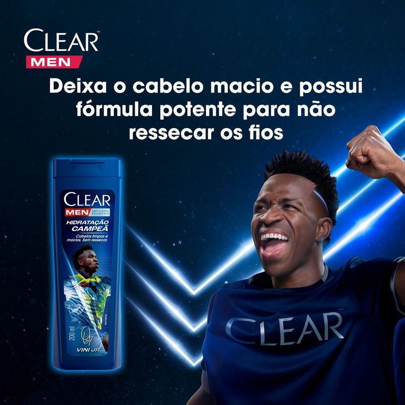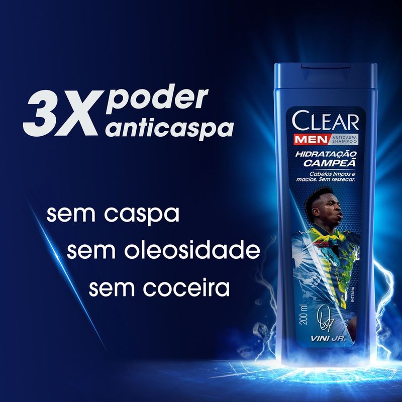 • O Shampoo Anticaspa Clear Men Hidratação Campeã foi desenvolvido para homens, pois o couro cabeludo do homem está mais propenso a caspa