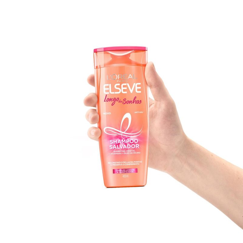O novo Shampoo Elseve Longo dos Sonhos de L'oréal Paris repara os fios e sela as pontas, para que você diga adeus ao comprimento danificado, salvando os últimos centímetros para evitar o corte. você pode ter um cabelo do tamanho dos seus sonhos. Indicado para cabelos longos e danificados.