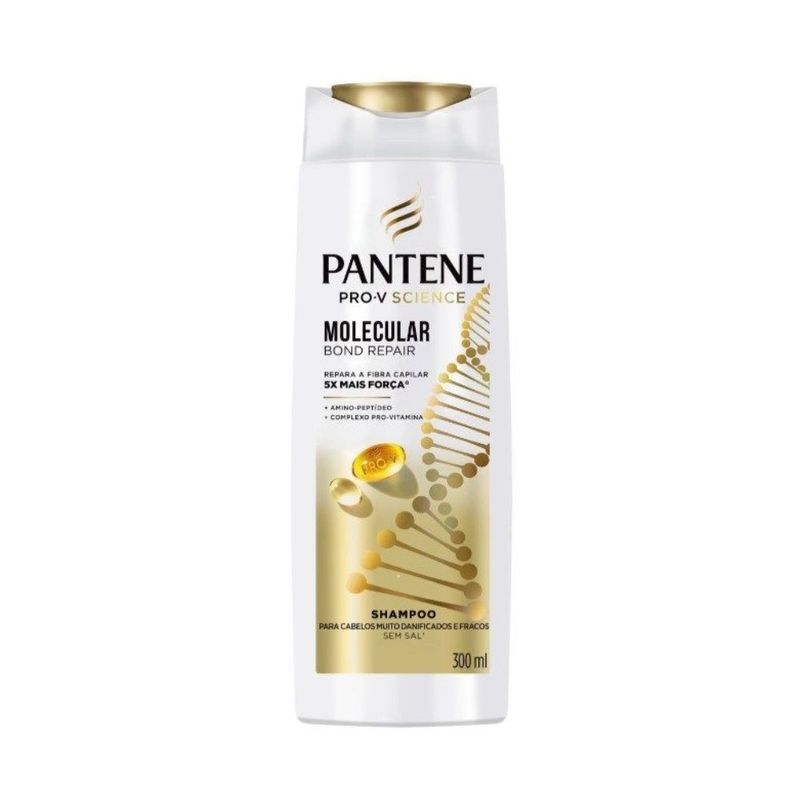 O Shampoo Molecular Bond Repair Pantene 300ml foi desenvolvido com tecnologia inovadora que repara danos profundos e reconstrói a estrutura molecular dos fios desde a primeira lavagem. Enriquecido com Pro-Vitaminas e moléculas restauradoras, limpa suavemente enquanto fortalece a fibra capilar, devolvendo brilho, maciez e elasticidade. Ideal para cabelos danificados por químicas, calor ou poluição, o produto ajuda a selar as cutículas e prevenir novas quebras. Seu uso contínuo resulta em fios mais saudáveis, resistentes e com aspecto revitalizado. A linha Bond Repair da Pantene é uma solução premium para quem busca reconstrução intensa e resultados visíveis.