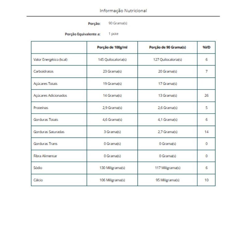 A "Sobremesa Doce de Leite Cremosão Danette 90g" é um produto da Danette que oferece uma sobremesa cremosa e deliciosa com sabor de doce de leite. Cada embalagem contém 90 gramas de uma sobremesa suave, ideal para um final de refeição doce e satisfatório. É prática para consumo imediato, podendo ser desfrutada diretamente do pote ou utilizada como ingrediente em receitas. A Danette, conhecida por suas sobremesas cremosas, garante uma experiência saborosa e indulgente com o Cremosão de Doce de Leite.