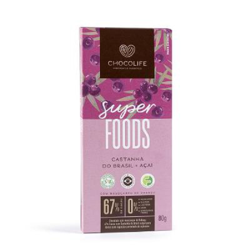 Superfoods 67% Cacau Açaí e Castanha Chocolife 80g