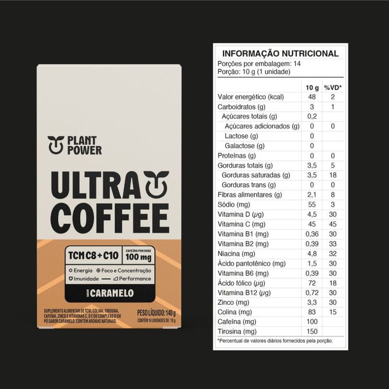 O Suplemento Alimentar em Pó Ultracoffee Cappuccino Plant Power Sachê 10g combina café, TCM, colina, taurina, canela e cúrcuma em uma fórmula 100% vegetal que oferece foco, energia e rendimento mental. Com sabor cremoso de cappuccino sem lactose, é ideal para quem deseja um reforço nutricional prático, funcional e saboroso, sem ingredientes artificiais ou de origem animal. Sua embalagem em sachê facilita o consumo em qualquer lugar, sendo excelente para rotinas corridas, estudos ou treinos intensos, com perfil low carb e sem glúten.