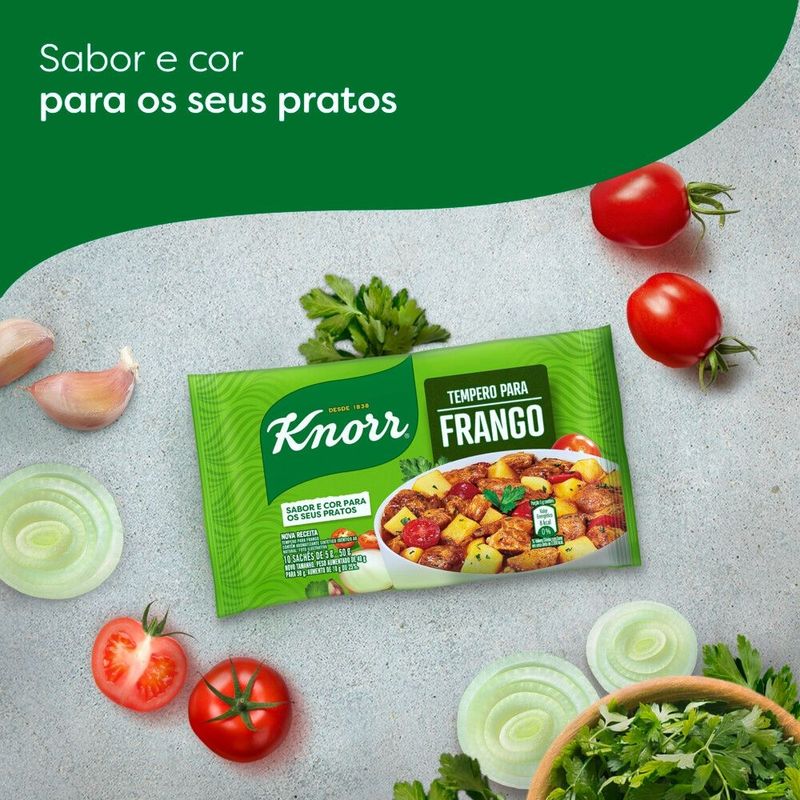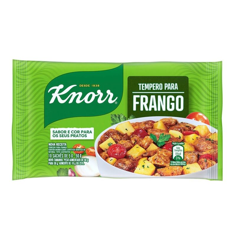 • O Tempero em Pó Knorr Frango é a escolha perfeita no preparo do seu frango de panela ou filezinho de frango grelhado • Este tempero em pó para frango é feito com ervas e especiarias que garantem cor e sabor aos seus pratos • O Tempero em Pó Knorr Frango é composto de Ingredientes naturais, como alho, salsa, páprica, coentro e cominho • Muito fácil e prático de usar: basta utilizar 1 sachê do Tempero em Pó Knorr Frango para 500 g de alimento e temperar como de costume • O Tempero em Pó Knorr Frango é um condimento feito com ingredientes cultivados sustentavelmente • Garanta mais praticidade e versatilidade no seu dia a dia com toda a linha de Temperos em Pó Knorr O Tempero em Pó Knorr Frango é a escolha perfeita quando o assunto é praticidade para o seu dia a dia. Com uma combinação única de ervas e especiarias que garantem cor e sabor para os seus pratos, o produto vai deixar o seu frango ainda mais temperadinho e delicioso. Para usar é muito fácil: basta utilizar 1 sachê de Tempero em Pó Knorr para 500 g de alimento e temperar como de costume. E pronto! Sua receita de frango já conta com todo o sabor e qualidade de Knorr. Nosso Tempero em Pó é bom para você e bom para o planeta, pois é feito com ingredientes cultivados de forma sustentável e produzido em uma fábrica com zero emissão de gás carbônico! O Tempero em Pó Knorr Frango garante que seus preparos tenham aquele gostinho a mais, pois é feito com ingredientes selecionados, como alho, salsa, páprica, coentro e cominho, dando ainda mais sabor para as suas receitas do dia a dia. Experimente preparar um delicioso filé de frango à milanesa ou um frango xadrez. Conheça toda a nossa linha de Temperos em Pó Knorr e garanta mais praticidade e versatilidade para os seus preparos do dia a dia. Linha disponível nos sabores Carne, Frango, Arroz e Feijão.