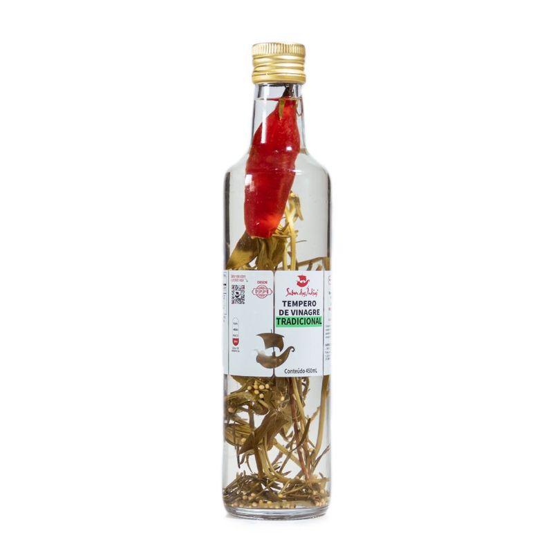 O Vinagre Temperado Tradicional Sabor das Índias é um condimento versátil e aromático que eleva o sabor das preparações do dia a dia. Elaborado com vinagre de qualidade e um mix equilibrado de ervas e especiarias, confere notas levemente ácidas e perfumadas aos pratos. Ideal para saladas, carnes, legumes e molhos, acrescenta sofisticação e frescor às receitas. Livre de corantes e conservantes artificiais, é inspirado na riqueza da culinária indiana, combinando tradição e sabor em perfeita harmonia. Sua embalagem de 450ml é prática e moderna, garantindo um toque gourmet em cada refeição.